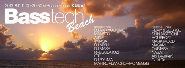 8月11日(日)、Beach House KULAにて開催される唯一無二のドラムンベースパーティー、【BASS TECH Beach】のLINE UPがいよいよ公開!!