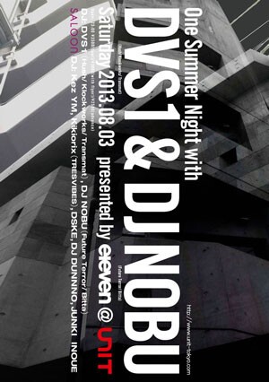 Ben Klockと共に世界各地で〈Klockworks〉ナイトを開催し、Panorama Barではハウス・セットを披露して好評を博すなど、益々人気と活動の幅を広げているDVS1と、惜しくも今年5月25日に幕を閉じることとなったelevenのクロージングパーティで、鳴りやまぬ歓声の中最後のレコードに針を落としたDJ NOBUを迎えて、真夏の一夜、ワンオフパーティの開催が決定しました。Saloonにも、Kez YM、Kikiorix、DSKE、DUNNNO、Junkiといったelevenの夜を彩ってきたDJが登場します。さらに、今回は代官山UNIT協力の下、elevenスタッフも参加してフロアメイクします!あの日で全てが終わった訳ではないから。音楽の力を信じる皆さんにぜひ参加していただきたい一夜です。
