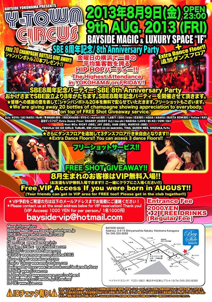 On 8/9/2013 (2nd FRI), Y-TOWN CIRCUS will be held @ BAYSIDE YOKOHAMA!!
