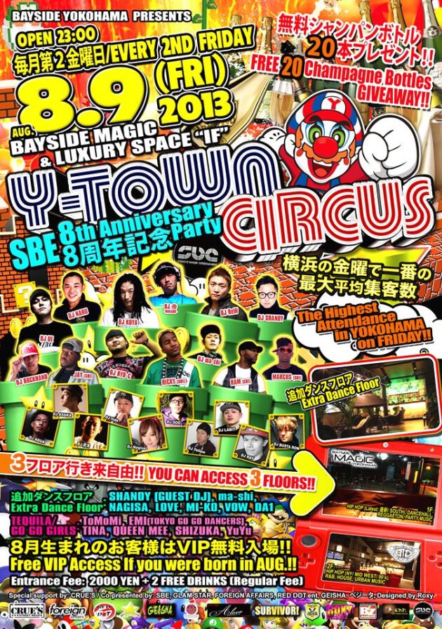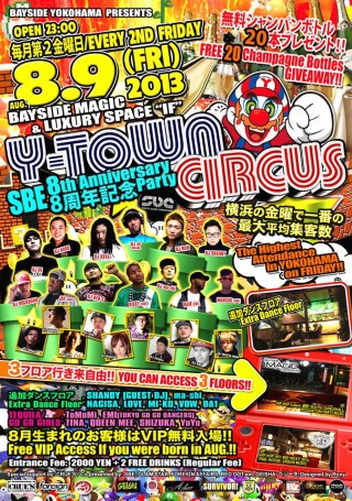 横浜最大級のクラブベイサイド横浜にて8月9日(第2金曜日)、Y-TOWN CIRCUSが開催!!