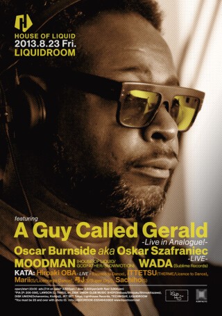 その男はUKダンス・ミュージック史の輝きしき“ルーツ”のひとりでありながら、現在も精力的に活躍するアーティストだ。A Guy Called Gerald――808ステイトの初期メンバーであり、そしてセカンド・サマー・オブ・ラヴの代表するUK産アシッド・ハウス・クラシック”Voodoo Ray”のリリース、さらにはアルバム『Black Secret Technology』でジャングルにアンビエント・テクノの要素を盛り込み、ドラムンベースと言われるひとつのアートフォームへと進化させた。現在はベルリンに居を移し、〈Laboratory Instinct〉などを中心にマイ・ペースながらすばらしいバック・トゥ・ベーシックなテクノ/ハウスをリリースし続けている。今回は、デビュー25周年を記念した限定ライヴ。近年では非常に珍しい完全アナログ・シンセ/ドラム・マシンの生出力で……、し、か、も、そのシンセ群とは、アシッド・ハウスやデトロイト・テクノの創出に寄与したとされるSH-101、TB-303やTR-808、909といったナンバリングのROLANDの名機が8台も使用される、現在ではその構成自体がプレミアムなもの。それをリヴィング・レジェンドたるGeraldがオペレートするというんがだから、まさに伝説の再現としか言えないプレミアム・ライヴ。見逃し、聴き逃し厳禁と言えるだろう。さらには、彼のそのキャリアよりも若い年齢のアーティスト、Oscar Burnsideが登場。1994年生まれ13歳でテクノ/ハウス・シーンに舞い降りたこの若き才人は、現在ベルリンで活動中のGeraldとともに活動も行っている。彼のラップトップ2台によるライヴも行われる。迎えるはミスター・ハウス・オブ・リキッド、MOODMAN。さらには日本において、Geraldとほぼ同様の長いキャリア持つベテラン、WADAが登場する。
