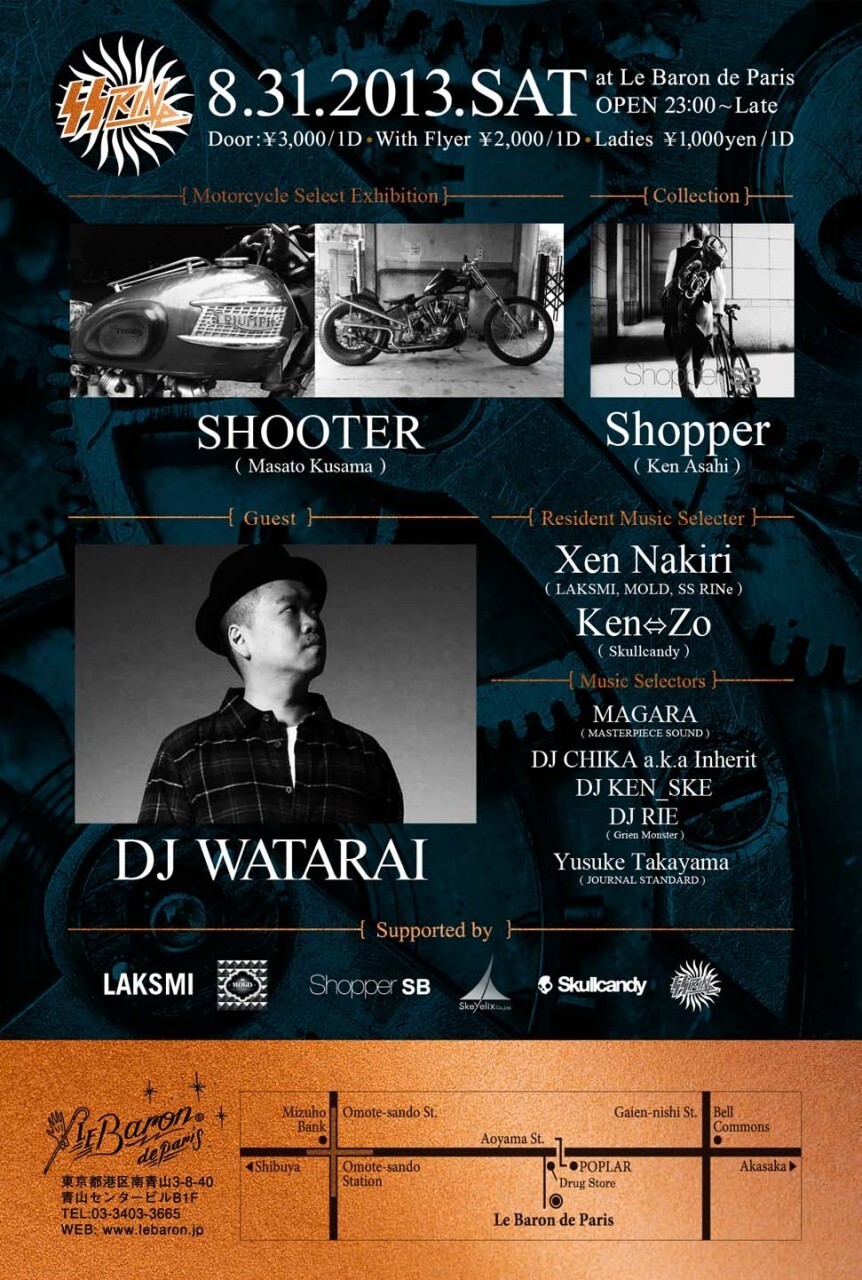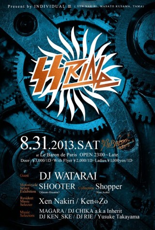 ナイトクラブから新たなカルチャーを発信する。そのことをコンセプトに、音箱でもない、ナンパ箱でもない、カルチャーの発信地としてファッションやミュージック、映画やアートに紐付くパーティーを夜な夜な催してきたLe Baron de Paris。東京唯一無二の大人の社交場として恒久なスタイルを保ちつつも、新たに革新的なチャレンジを願う私たちINDIVIDUALは、【Motorcycle】をテーマに【SS RINe】を開催します。モーターサイクルと言うと幅広いですが、私たちが着目したのは、カスタムハーレーです。そこで、専門誌に掲載された実績のあるカスタムハーレー実車を展示し、イベントオーガナイザー、プロモーターの協力の元、東京で活躍するDJやLIVE PERFORMOR,DANCER VJを迎え、会話が弾み、ドリンクが進む、そして最高の音楽が絶えない、お客様を第一に考えた革新的なクラブイベント。
