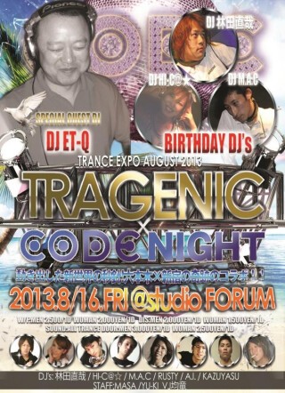 今回のTRAGENICは、club complex CODEとpsychedelicの2本立て(^-^)/