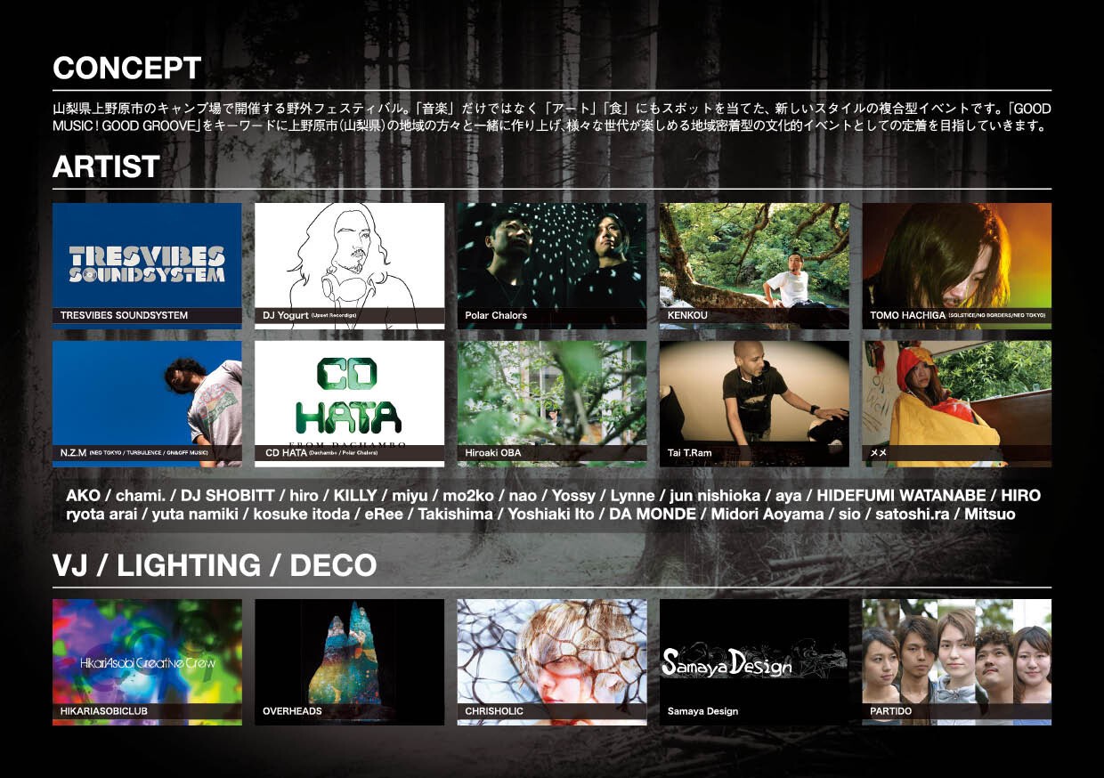 TRESVIBES SOUNDSYSTEM(Satoshi Ostuki, DJ PI-GE, Kikiorix)/DJ Yogurt(Upset Recordigs)/Polar Chalors/KENKOU/TOMO HACHIGA(SOLSTICE/NO BORDERS/NEO TOKYO)/N.Z.M(NEO TOKYO / TURBULENCE / ON&OFF MUSIC)/CD HATA (Dachambo / Polar Chalors)/Hiroaki OBA/Tai T.Ram/メメ/AKO/chami./DJ SHOBITT/hiro/KILLY/miyu/clea/mo2k/nao/Yossy/Lynne/jun nishioka/aya /HIDEFUMI WATANABE/HIRO/ryota arai/yuta namiki/kosuke itoda/eRee/Takishima/Yoshiaki Ito/DA MONDE/Midori Aoyama&sio/satoshi.ra/Mitsuo