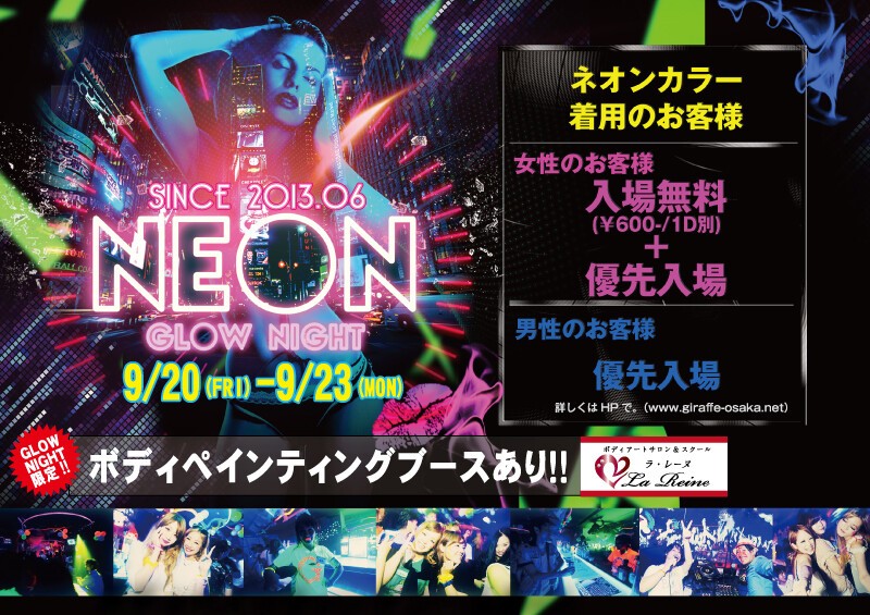 『NEON GLOW NIGHT』9/20(金)~9/23(月・祝)