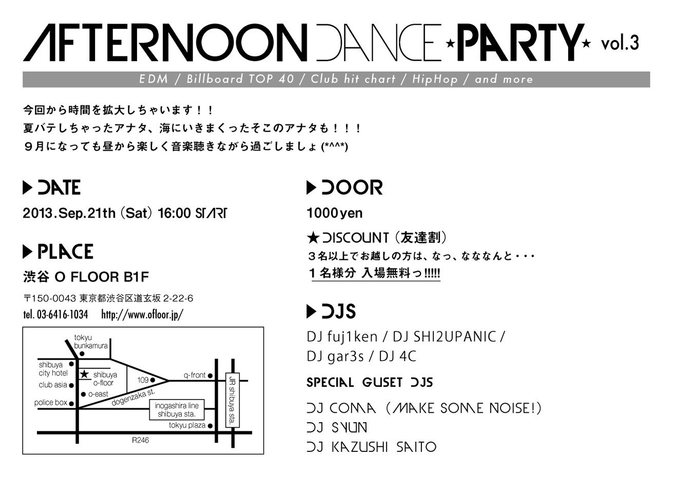 Place: 渋谷 O FLOOR B1F
