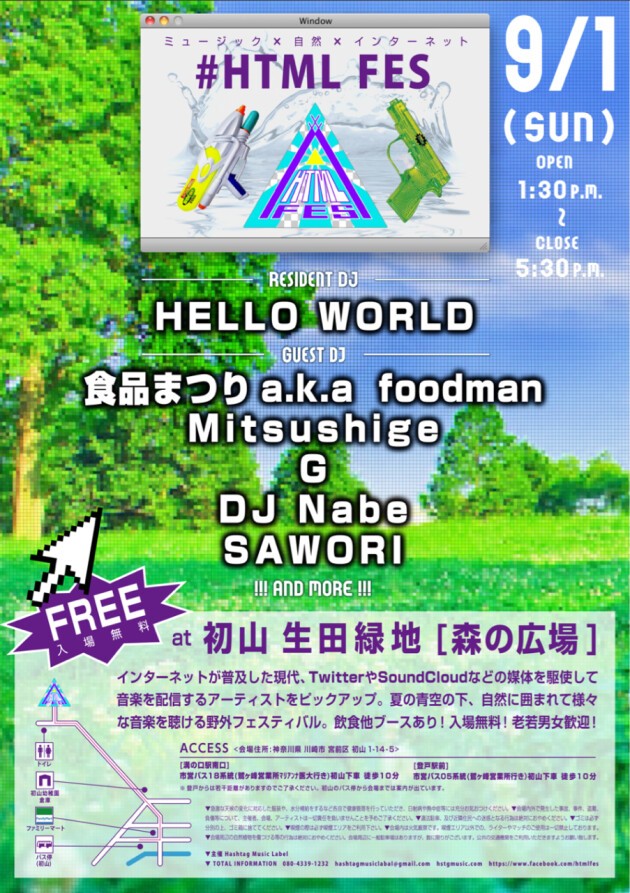 インターネット上で活動するアーティストに焦点を当てた野外フェス「#HTML Fes」が9月1日に神奈川・生田緑地 森の広場で開催。インターネット上で活動する、音楽シーンの次世代を担うアーティストをピックアップ。