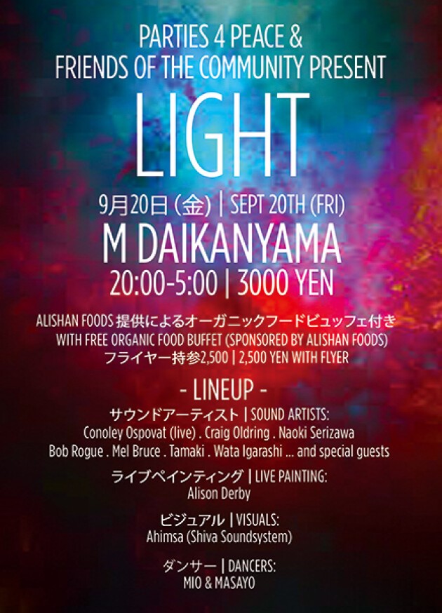 Parties 4 Peace & Friends of the community present "LIGHT"、「TWOMEY SCHOLARSHIP FUND」(TWOMEY奨学金基金)をサポートする音楽とアートイベント