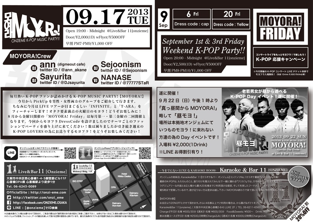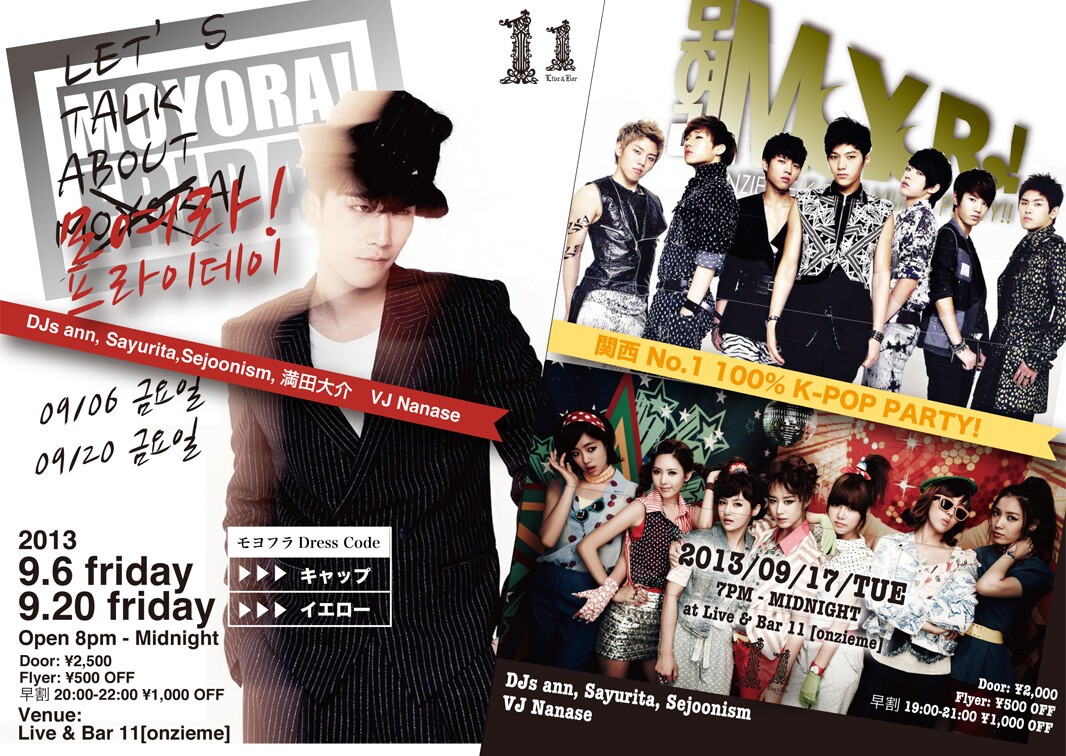 今回からモヨフラDress Codeを設けましたのでテーマごとのファッションでパーティを盛り上げに来て下さい!数は減りましたが引き続き週末のK-POP LOVERSの為にお送りするモヨフラ!をどうぞおたのしみください!