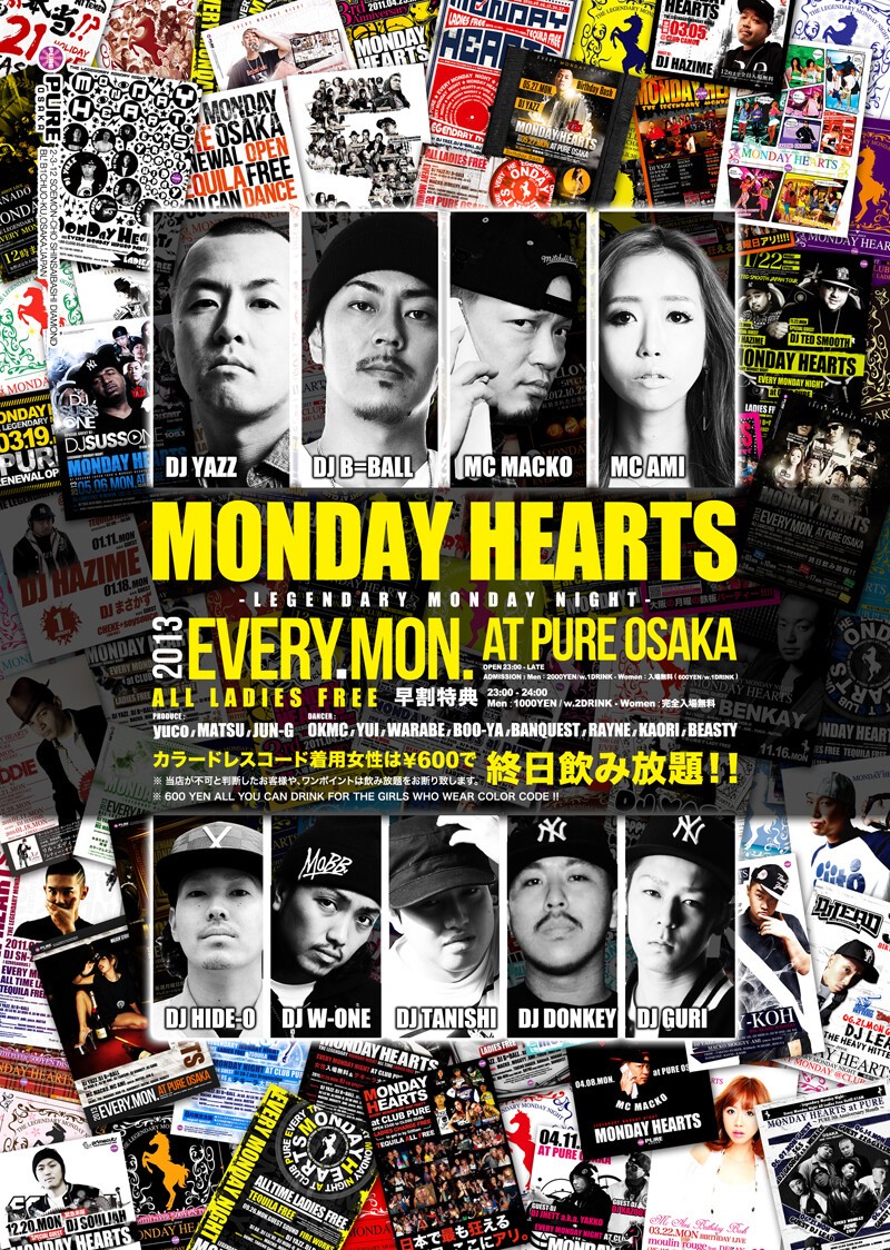 MACKO, AMI, yuco, MATSU のプロデュースによる毎週、平日に400人を超える日本で最も狂える月曜日、MONDAY HEARTS!!