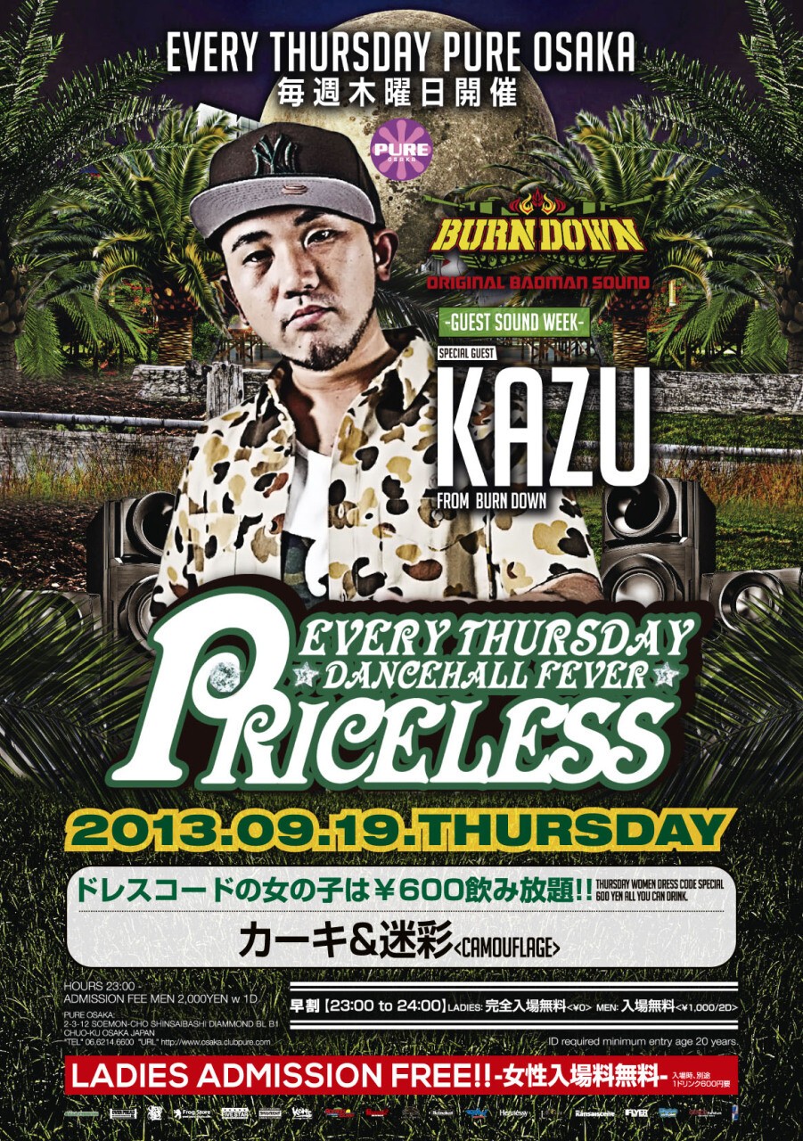 「PRICELESS」は、REALなREGGAE DANCEHALL MUSICはもちろん、HIP HOPやR&B、SOUL等も幅広くPALY!!全ての人達が楽しめる空間です。