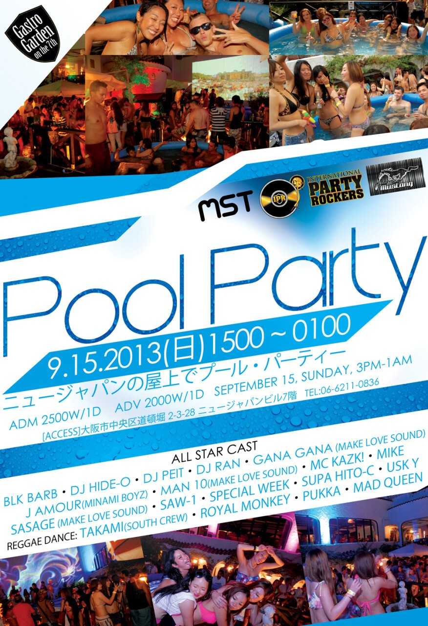 海外にある様なPOOL PARTYを目指して9/15に大阪の代名詞でもあるニュージャパンの屋上でPOOL PARTYを開催します。