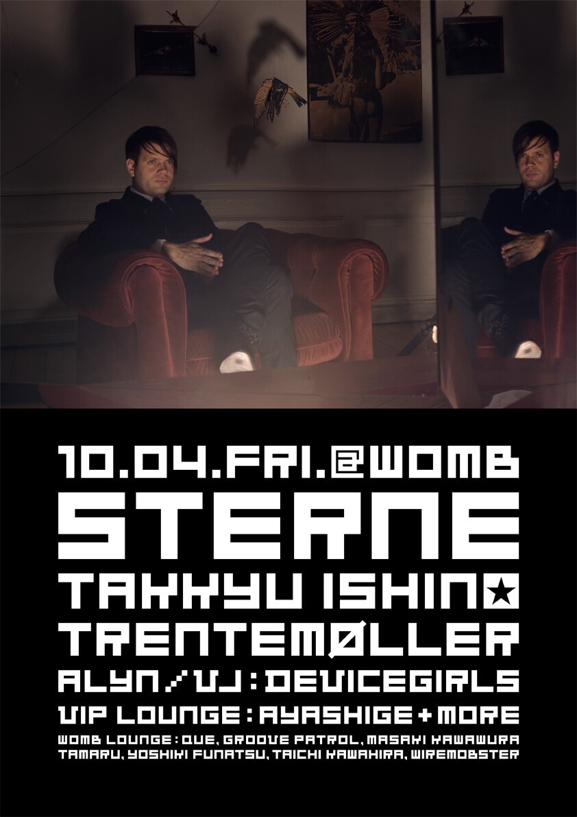 電気グルーヴ石野卓球レジデントパーティー、STERNE。今回はヨーロッパのミュージックシーンで今や知らない人はいないトップアーティスト、TRENTE MOLLER が STERNE 初登場!