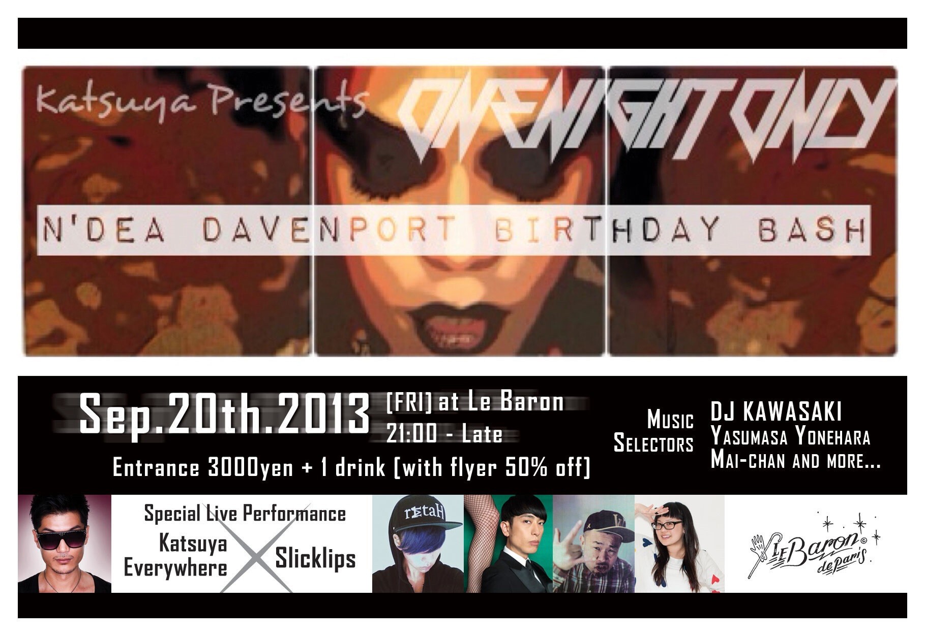 90年代半ばにUKアッシドジャズ界で話題をさらったBrand New Heaviesの初代歌姫、あのエンディア・ダヴェンポートが急遽来日!エンディアと所縁のある著名DJ陣がここぞとばかりに大集結!エンディアの豪華バースデーパーティーと国際的に活躍するDJ陣による秀逸なDJセットをご堪能ください!