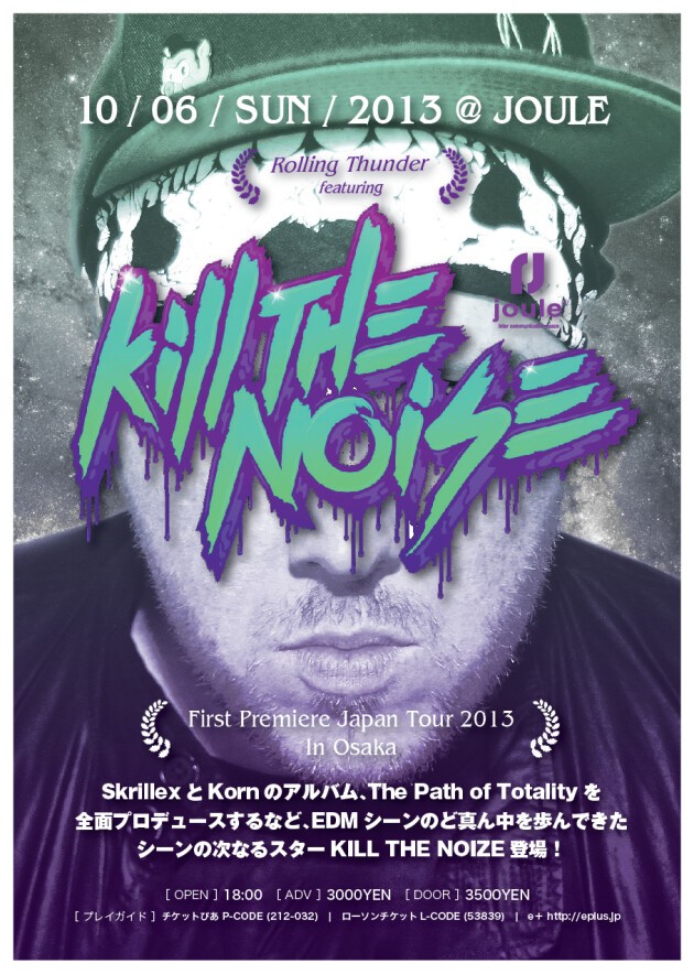 Skrillexと共同で、Kornのアルバム、The Path of Totalityを全面プロデュースするなど、EDMシーンのど真ん中を歩んできたシーンの次なるスターKILL THE NOIZEが遂に大阪に上陸。