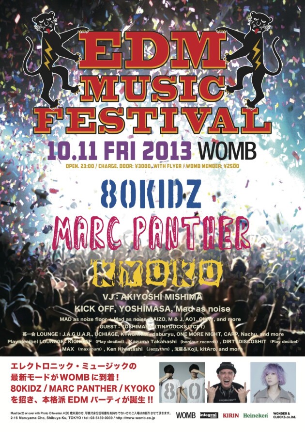 WOMBを舞台に、本格派EDMパーティが開催決定!80KIDZ/MARC PANTHER/KYOKOをゲストに迎えエレクトロニック・ミュージックの最新モードをプレゼント!!