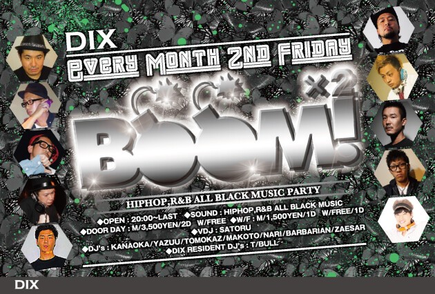 2011年12月より、毎月第2金曜日に開催するALL BLACK MUSIC PARTY『BOOM!×2(ブンブン)』。