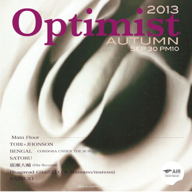 ダンスミュージックの持つ力は、人の心を揺さぶり、刺激し、そして感動と興奮へと誘う。”OPTIMIST”はその力をダンスミュージックを通して表現し続けてきた。今でもクラブカルチャーの課題は、そうした空間をいかに創造し続けるかである。幅広いジャンルで野外レイブを彷彿させる音、ジャンルを超えた新しいクロスオーバーな一夜をぜひ体感して欲しい。