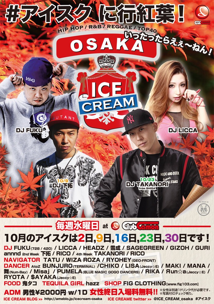 【毎週水曜アイスク】水曜カモンは『ICE CREAM』☆DJ FUKU、DJ LICCAを筆頭に豪華DJ陣によるHIP HOP & FIRST CLASS MUSICをお届け!!24時まで全員入場無料&女性は1Dプレゼント★