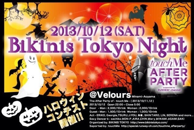 ハロウィンを前にBIKINIS TOKYOがプロデュースする衣装を身にまとった モデル、ダンサー、ACT陣による豪華エンターテイメント!!! さらに今回はマークスタイラーが主催する完全招待制のコレクションで若者を中心に大人気のブランド(EMODAD,MURUA,dazzllin etc..)の ファッションイベント「touch Me」のとのコラボレーションが実現!! 「BIKINIS TOKYO NIGHT×touch Me」 最新のファッションショー、煌びやかなGOGO DANCE、都内人気ACTによる共演がVelouersを熱くします!!