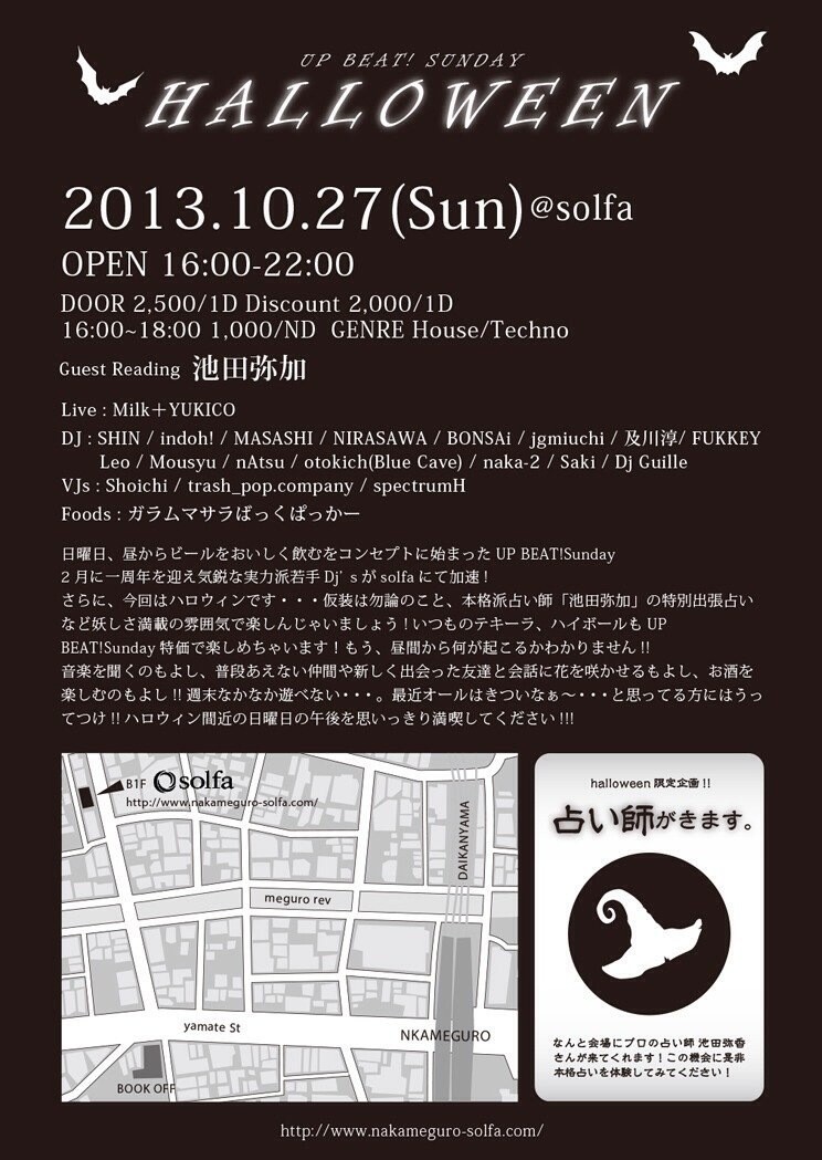 さらに、今回はハロウィンです・・・仮装は勿論のこと、本格派占い師「池田弥加」の特別出張占いなど妖しさ満載の雰囲気で楽しんじゃいましょう!