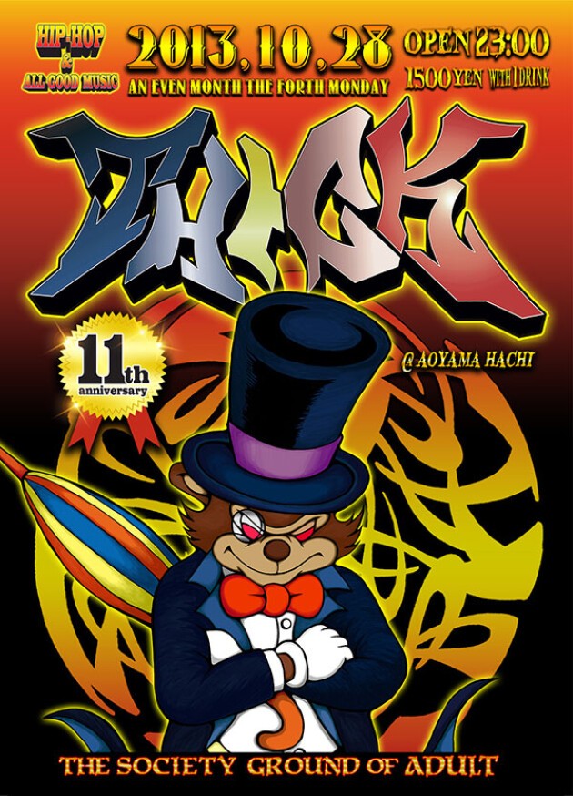 青山蜂にて偶数月第四月曜日に行われているPARTY、東京UNDERGROUND HIPHOP EVENT THICK(シック)、記念すべき11周年!