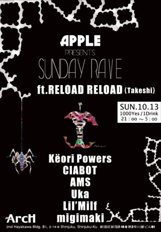インターナショナル・マルチクリエイターたちがプロデュースする、スペシャルで罪なサンデー・レイヴ『apple』。