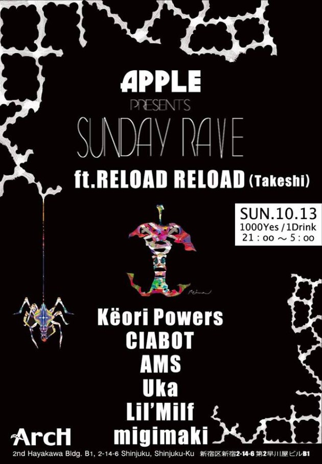 来る10月13日(日)、RELOAD RELOAD (Takeshi) をゲストDJに迎え、二丁目のダンジョンArcHにて、エクスタシーを解放させる夜をお届けする。
