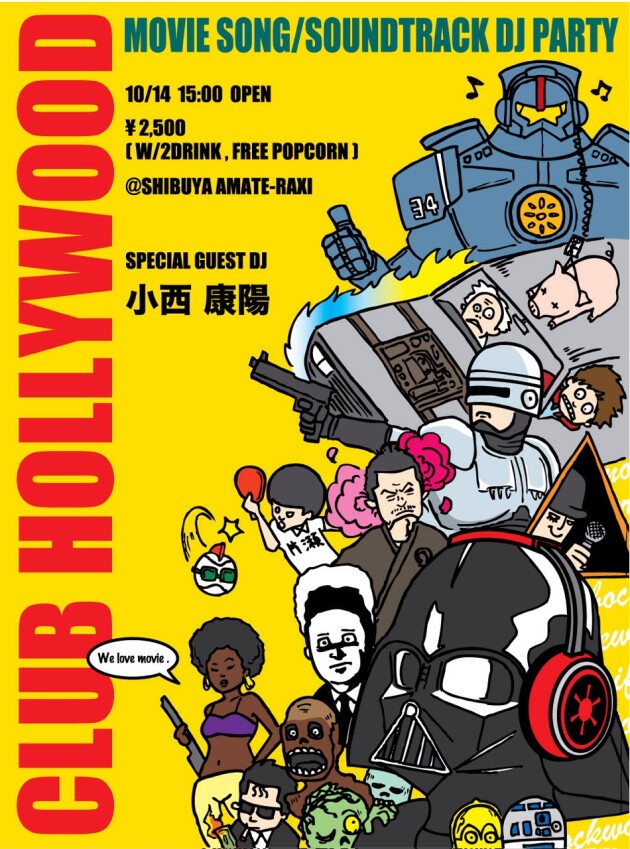 前代未聞の映画主題歌/サントラのみで送るDJイベント『CLUB HOLLYWOOD』。映画好きの、映画好きによる、映画好きのだめのDJイベントがここに始動します。