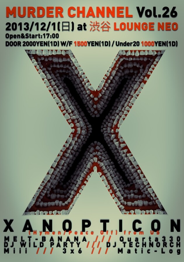 東京は12月1日に渋谷のLOUNGE NEOでデイタイム(17:00-23:00まで)になりますので未成年の方も是非是非遊びに来てくださいね!国内からもニューアルバムをリリースしたばかりの「MELT-BANANA」が久々にMurder Channelに出演してくれます!そして、「DJ WILD PARTY」がクラシックなブレイクコア・セットで出演します!この機会を絶対にお見逃しなく!