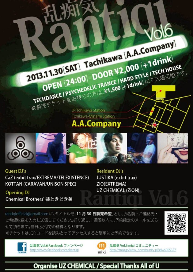 rantiqiofficial@gmail.comに、タイトルを「11月30日前売希望」とし、お名前・ご連絡先・ご希望枚数を入力し送信してください。折り返し、1週間以内に、予約確定のメールを遅らせて頂きます。当日、受付での清算となります。