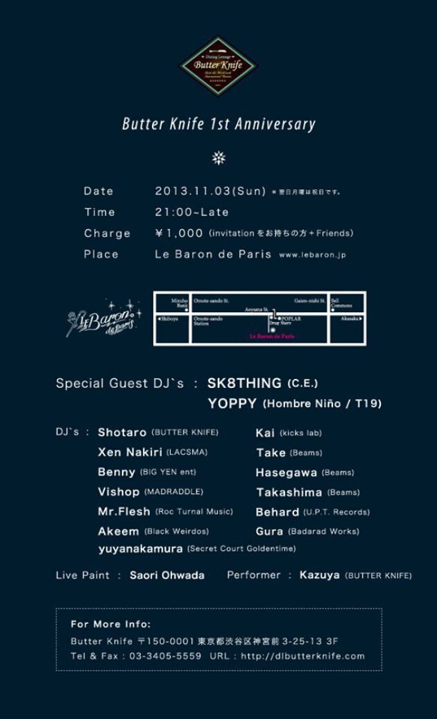 馴染みの地である原宿で開業してはや一年。多くの業界人に愛されている隠れ家レストランBUTTER KNIFEの1周年記念パーティーにお越しください。