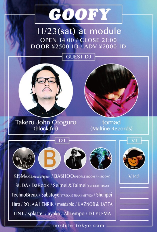block.fm等でもお馴染みのTJOことTakeru John Otoguro、ネットレーベルの日本最高峰に君臨するMaltine Records主宰のtomadが出演決定。