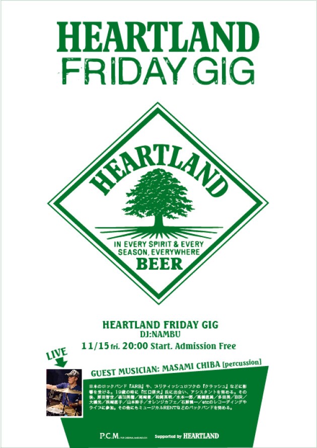 P.C.M.とハートランドビールのコラボレーションで贈る新イベント「HEARTLAND FRIDAY GIG」