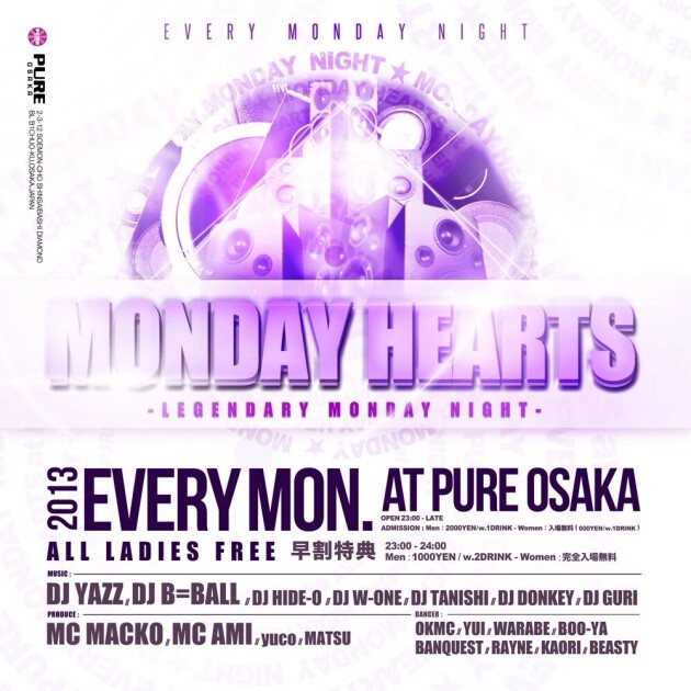 MACKO, AMI, yuco, MATSU のプロデュースによる毎週、平日に400人を超える日本で最も狂える月曜日、MONDAY HEARTS!!