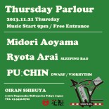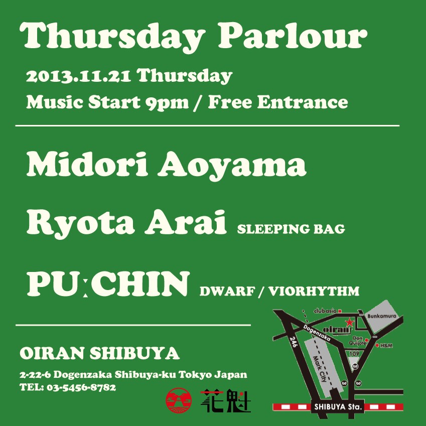 Midori Aoyamaがプロデュースする平日の音楽空間!英国王室の客間が語源の「パーラー」を現代風にアレンジして皆様をおもてなし。レギュラー開催の木曜日、今月も旬なラインナップで迎えます。エントランスフリーに加えてオススメのスペシャルドリンクも用意します!週末が待ちきれない方に、平日終電前の1杯にも。。。新しい遊び方「Parlour Style」を体験しに来てください!