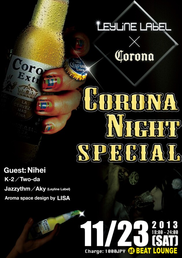 Guest DJにNihei氏を迎え、K-2, Two-daと供にレイライン Jazzythm, Akyと第一線ダンスミュージックシーン直下型のHOUSE DJ布陣でCorona NIGHTを彩ります。