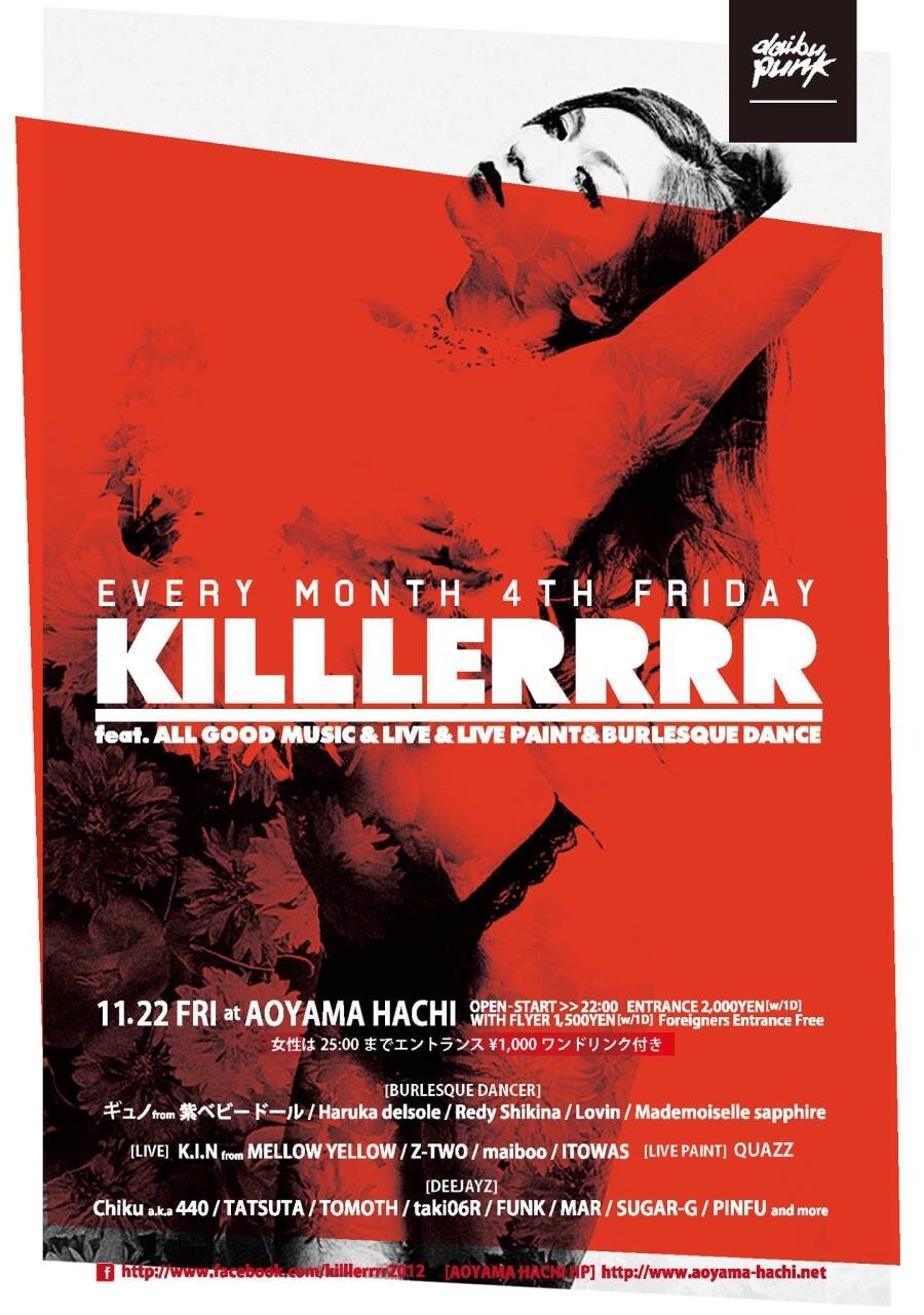 11月22日(金)KILLLERRRR at 青山蜂 (毎月第4金曜日開催)