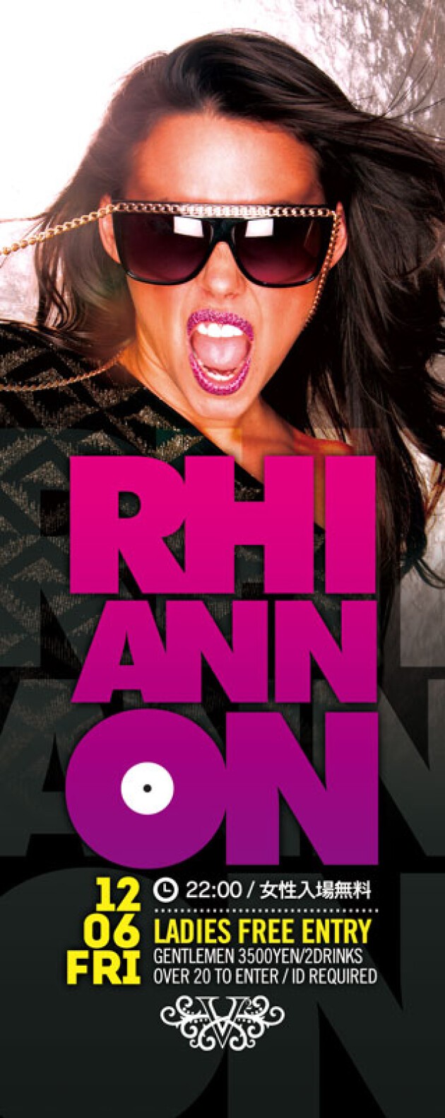 12月6日(金)GRANDOPENでV2を盛り上げてくれたSEXYなRHIANNONが再登場します!皆さん彼女に負けない位セクシーにDRESS UPして遊びに来て下さい♪