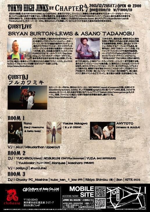 歩くメディアこと Bryan Burton-Lewis と俳優としての活躍も目覚ましいAsano TadanobuによるSpecial Live Set と、