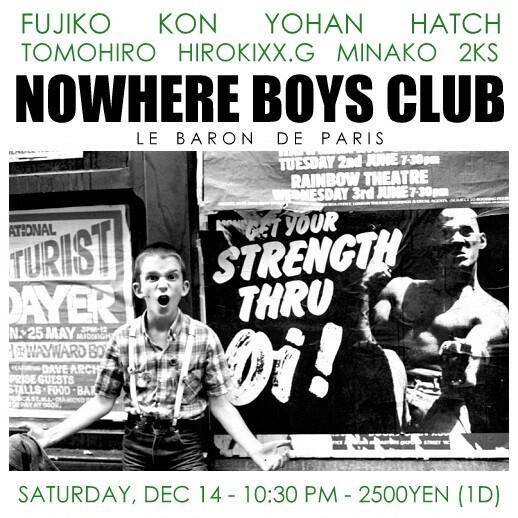 お馴染みFUJIKOやヨハンなど、新進気鋭のパーティーモンスターが集結するNOWHERE BOYS CLUB!様々な分野で活躍する彼らがオールジャンルのDJセットで心地よい空間を演出します。文化交流の場所Le Baron de Parisならではの大人な夜をお楽しみ下さい。