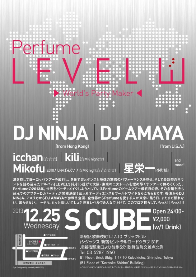 世界をパーティメイクしようとしているPerfumeのドームツアー最終日の夜、その余韻を持ち込んでのアフターDJパーティが開催決定!