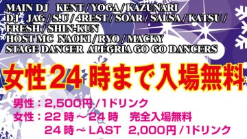 24:00 - 1:00 MEN ¥600/1D / WOMEN ENTRY FREE
