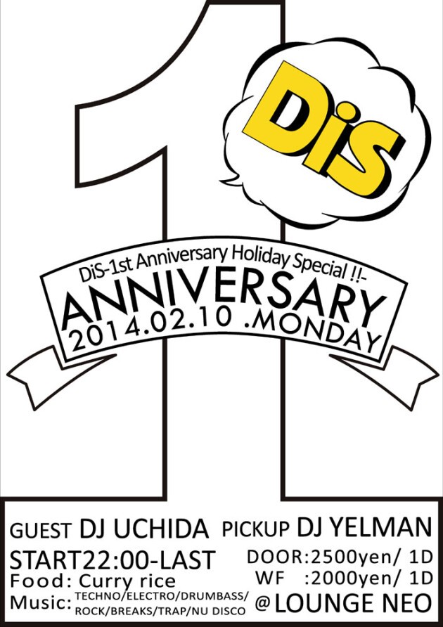 Weekdayを思わせない盛り上がりで開催してきた"DiS"が今宵1st Anniversaryを迎える。