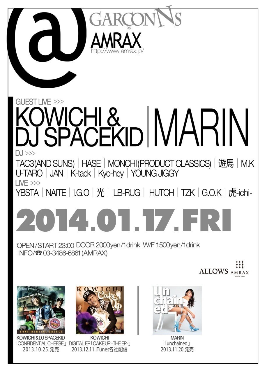 DJ: TAC3, HASE, MONCHI, 遊馬, M.K, U-TARO, JAN, K-tack, Kyo-hey, YOUNG JIGGY