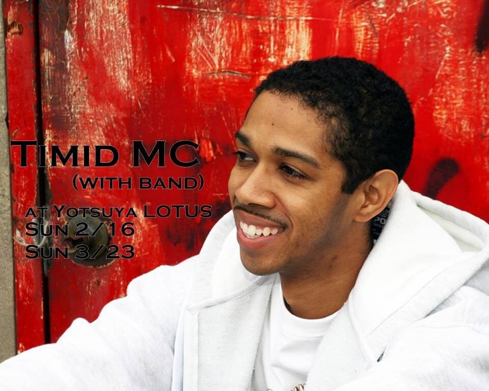 TIMID, hip-hop artist from NYC hits the Tokyo scene with his fresh brand of socially conscious, thinking man's hip-hop. As special treat, he will be supported by a live band to lay down the foundation and keep the groove ~