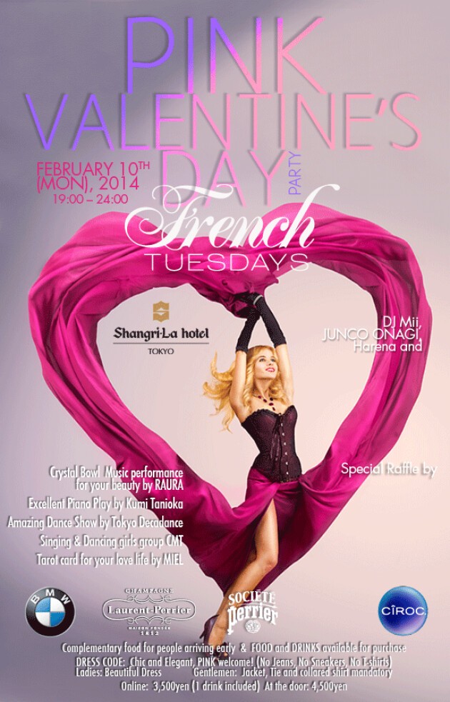 2月10日(月)Shangri-La Hotel Tokyoにてバレンタインパーティー『PINK Valentine's Day Party』が開催されます。