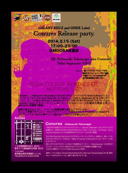 Conures aka Nobuyuki Tokunaga is celebrating his new release from Galaxy Recz(JNP) and ONDE(ITL).