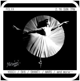 FELIXとはラテン語で”幸福”を意味する。幸せなみんながより幸せになれる夜。そんな少しキザな願いを込めて今夜は19:00からパーティースタート!DJは佐渡島生まれでミニマルサウンド好きなYOCCI。神出鬼没で鶏肉大好きなSHANTI。トラックメイカーで忍者に生まれ変わりたいMARSなど、いつもとは違った顔ぶれが登場。みんなの大好きを詰め込んだFELIX NIGHTに乞うご期待!
