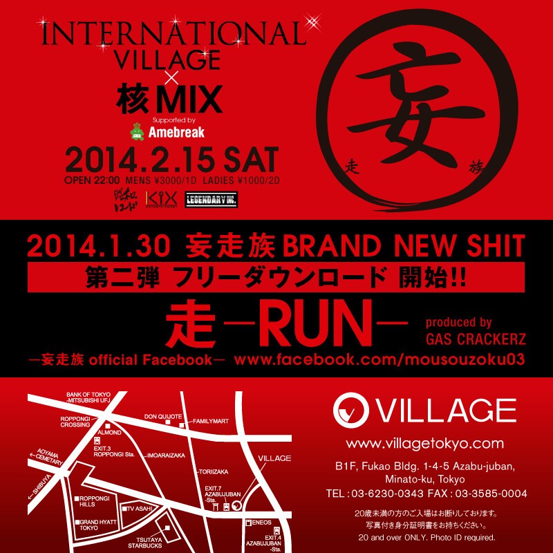 2/15(sat) "妄走族" が約10年ぶりに再始動!"妄走族" 主宰の伝説的なイベント『核MIX』と『INTERNATIONAL VILLAGE』がコラボレーション開催!
